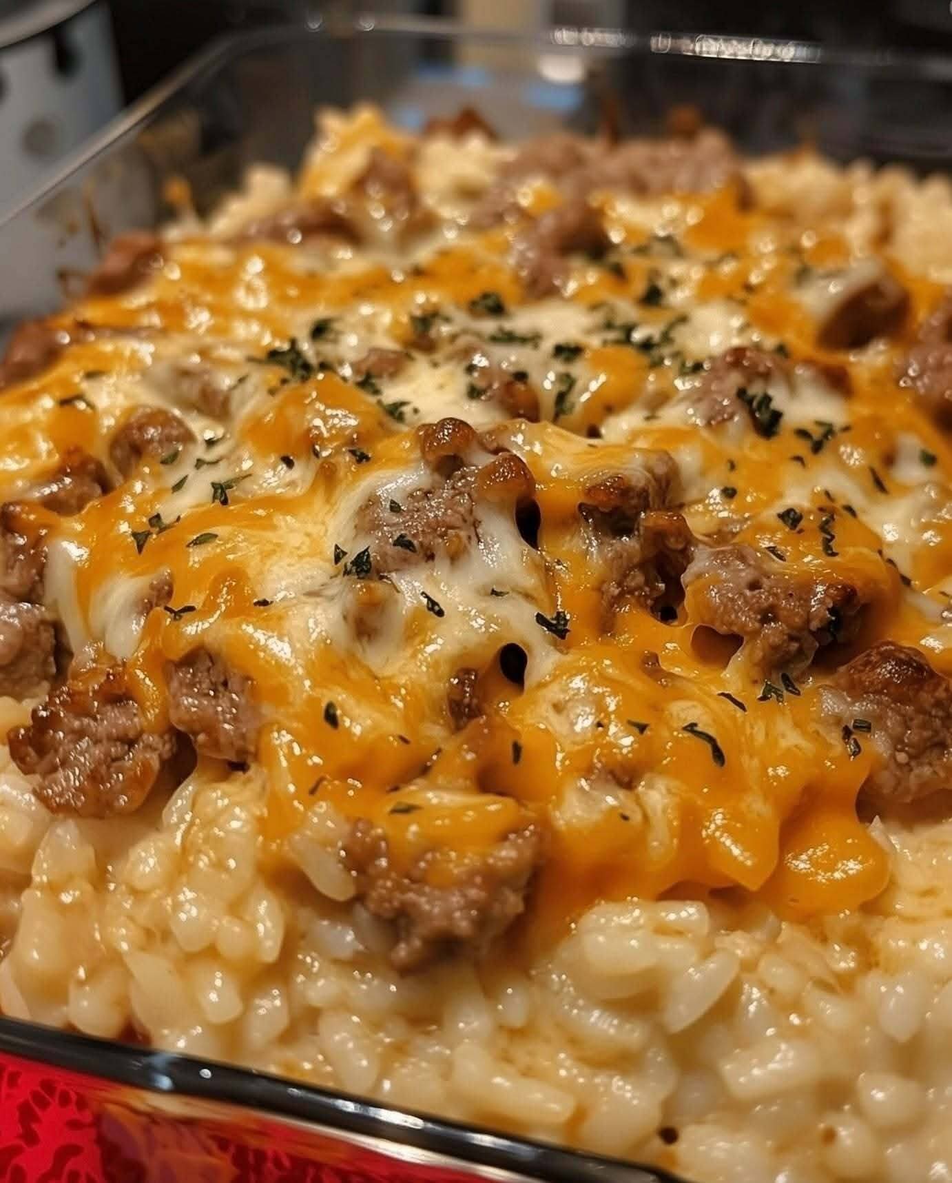 This final section reinforces why this casserole is a staple for comfort food lovers. The creamy sauce, perfectly seasoned beef, tender rice, and melted cheese come together to create a dish that is both hearty and indulgent. It is flexible, family-friendly, visually appealing, and utterly delicious. From the first scoop to the last bite, the layers of flavor and texture make this casserole unforgettable, whether served fresh, reheated, or shared with friends and family. Its combination of ease, versatility, and timeless comfort makes it a recipe to return to again and again, a true celebration of home cooking at its finest.
